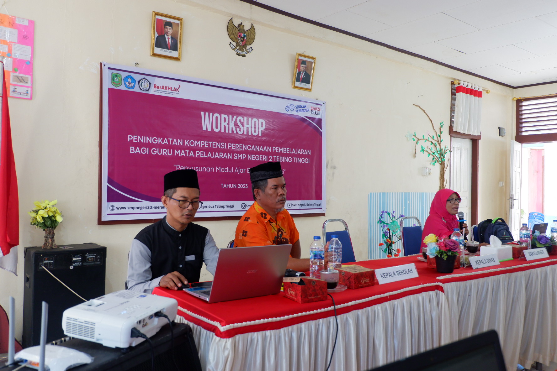 SMP Negeri 2 Tebing Tinggi menggelar workshop berjudul Peningkatan Kompetensi Perencanaan Pembelajaran Bagi Guru Mata Pelajaran dengan tema ‘Penyusunan Modul Ajar Berdiferensiasi’. Workshop ini dilaksanakan selama 2 hari. Peserta mengikuti pembukaan workshop di Ruang Pertemuan SMP Negeri 2 Tebing Tinggi Kepulauan Meranti yang dibuka secara langsung oleh Kepala Dinas Pendidikan dan Kebudayaan Kabupaten Kepulauan Meranti, H. Suardi, M.Pd.